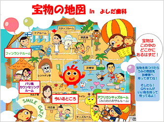 | 診療室、予防ルーム(フィンランドルーム)、カウンセリングルームを使って、宝物(歯のオブジェ)を隠し、子ども達が探し出す! |